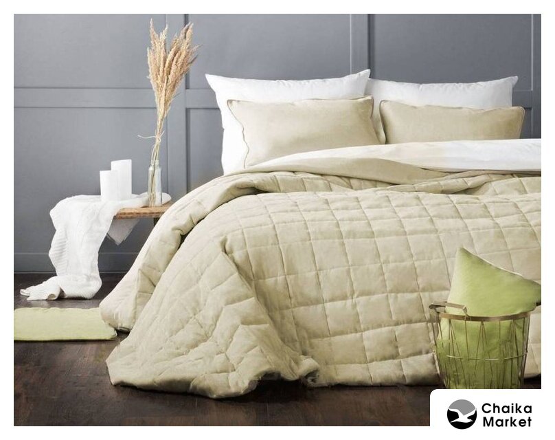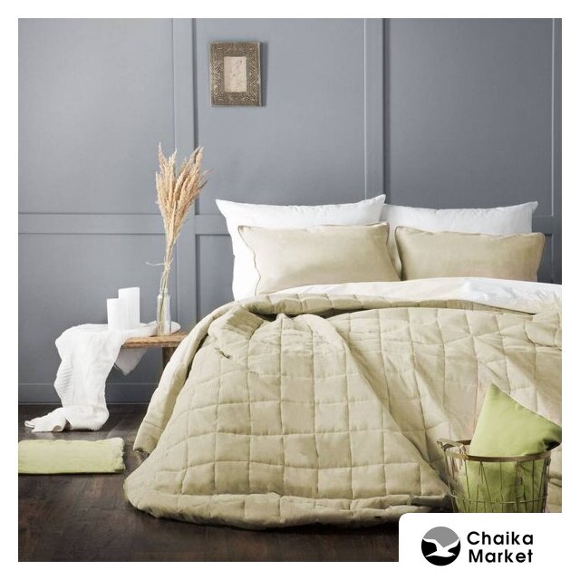 набор текстиля для спальни, 240x260, жаккард (полиэстер), бежевый/белый