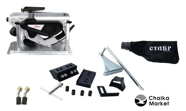 Комплект поставки | винты крепления рубанка к станине, параллельный упор,мешок для сбора стружки, угольные щетки (комплект), ключ для установки строгальных ножей, устройство для правки для ножей,упор-фиксатор выключателя, возвратный кожух для защиты строгальных ножей, упор д |