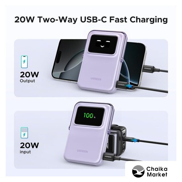 5000 мА·ч (18.5 Вт·ч), выходы: 1 x 5V/9V/12V (3000 мА), быстрая зарядка, беспроводная зарядка, поддержка MagSafe, подставка