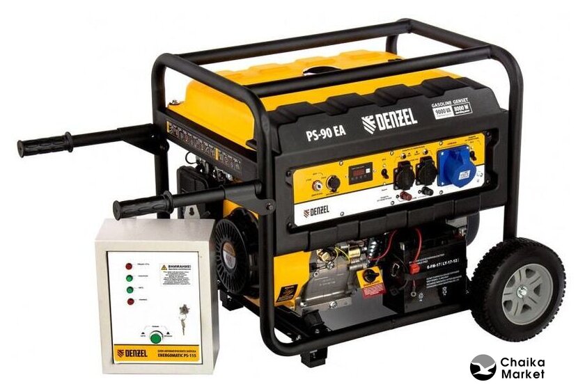 бензиновый, исполнение: открытое, 8 кВт, запуск: ручной/электростартер, время непрерывной работы: 10 ч, 90 кг