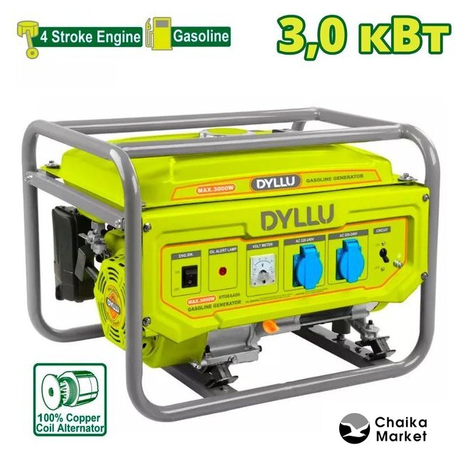 бензиновый, исполнение: открытое, 2.2 кВт, запуск: ручной, 26 кг