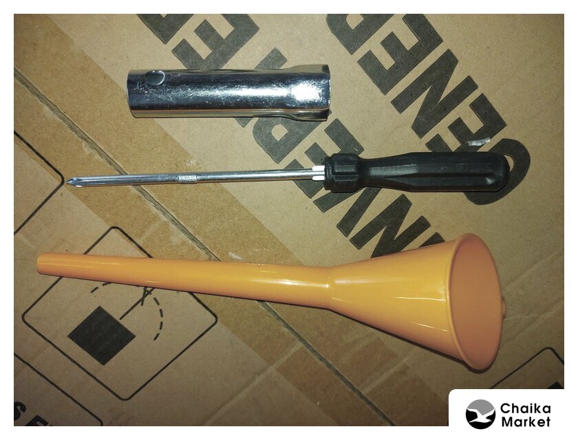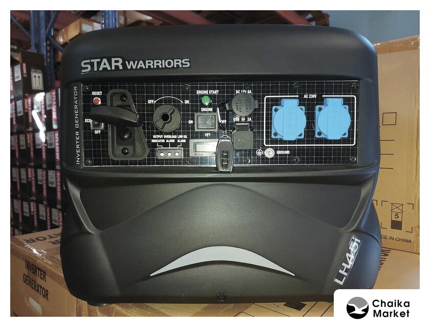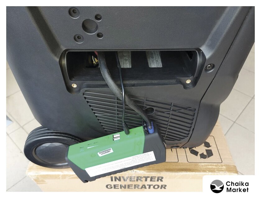 Комплектация | - генератор;- пульт дистанционного управления;- powerbank с двумя USB-разъёмами, фонариком LED, резаком;- провода с зажимами для зарядки АКБ;- инструкция по эксплуатации;- мерная лейка для заливки масла;- ключ свечной;- отвертка. |