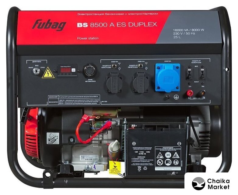 бензиновый, максимальная мощность: 8 кВт, номинальная мощность: 7.5 кВт, запуск: ручной/электростартер, время непрерывной работы: 6 ч, 64.8 кг