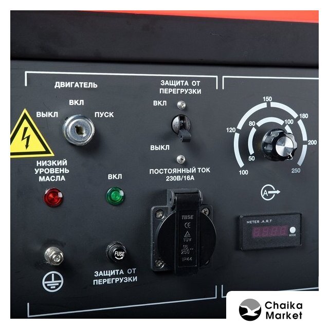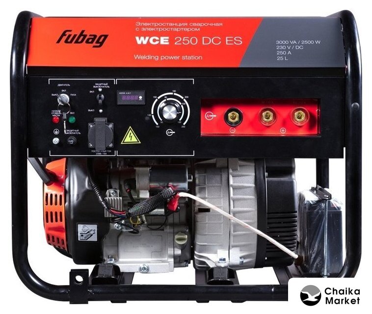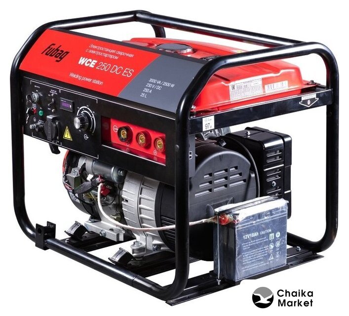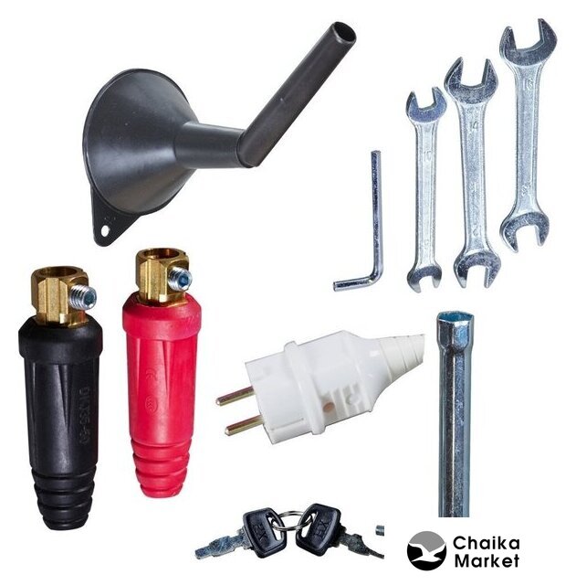 Комплектация | • Вилка 16А/220В (1 шт)• Свечной ключ (1 шт)• Разъемы для подключения сварочных кабелей (2 шт красный + 1 шт черный)• Ключ электростартера (2 шт)• Набор инструментов (ключи гаечные 3 шт, отвертка 1 шт)• Воронка для заливки масла (1 шт) |
