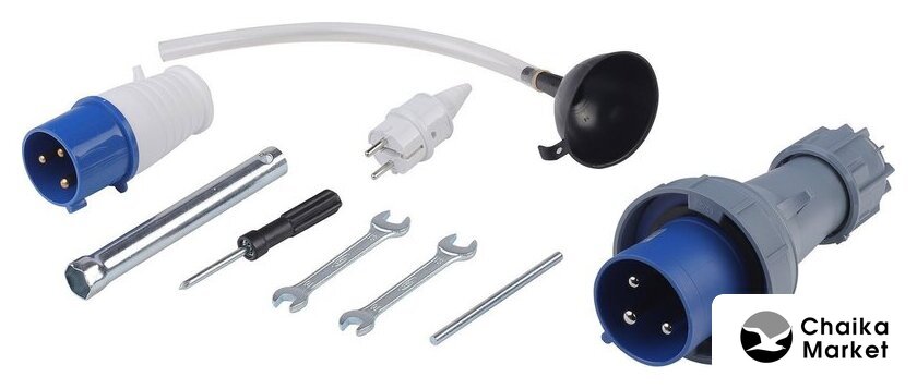 Комплектация | - Генератор бензиновый;- Комплект колес;- Воронка для залива масла;- Вилки 230В: 1х16А, 1х32А, 1х63А;- Инструкция. |