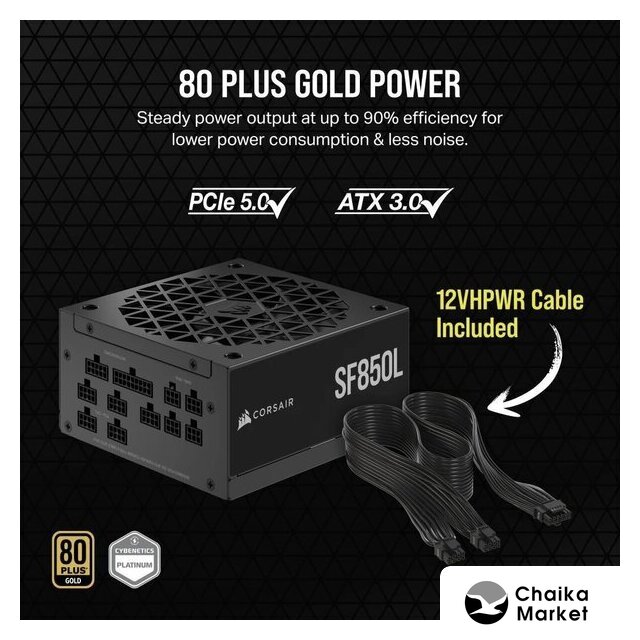 ATX 1200 Вт, активная PFC, золотой сертификат, вентилятор 1x135 мм, модульные кабели, 1x 12В 100А, 1x PCIe Gen5