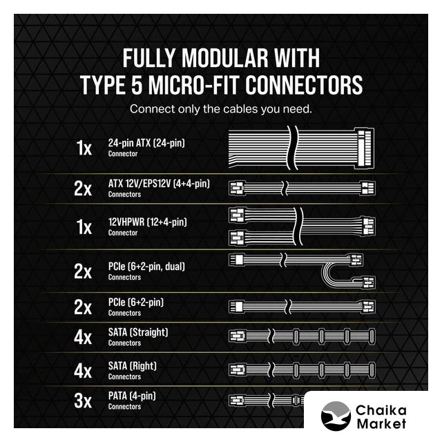 | Модульное подключение кабелей питания | есть |