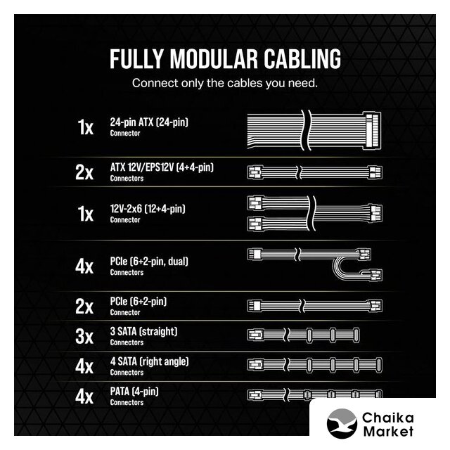 | Модульное подключение кабелей питания | есть |