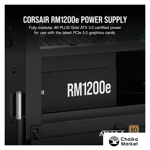 ATX 1200 Вт, активная PFC, золотой сертификат, вентилятор 1x135 мм, модульные кабели, 1x 12В 100А, 1x PCIe Gen5