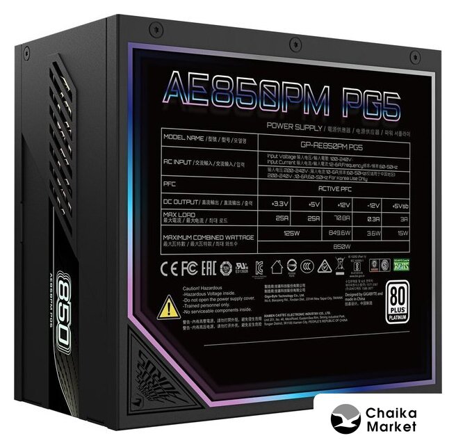 ATX 850 Вт, активная PFC, бронзовый сертификат, вентилятор 1x140 мм, модульные кабели, 1x 12В 70.5А