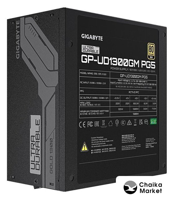 ATX 1000 Вт, активная PFC, золотой сертификат, вентилятор 1x120 мм, модульные кабели, 1x 12В 83.3А, 1x PCIe Gen5