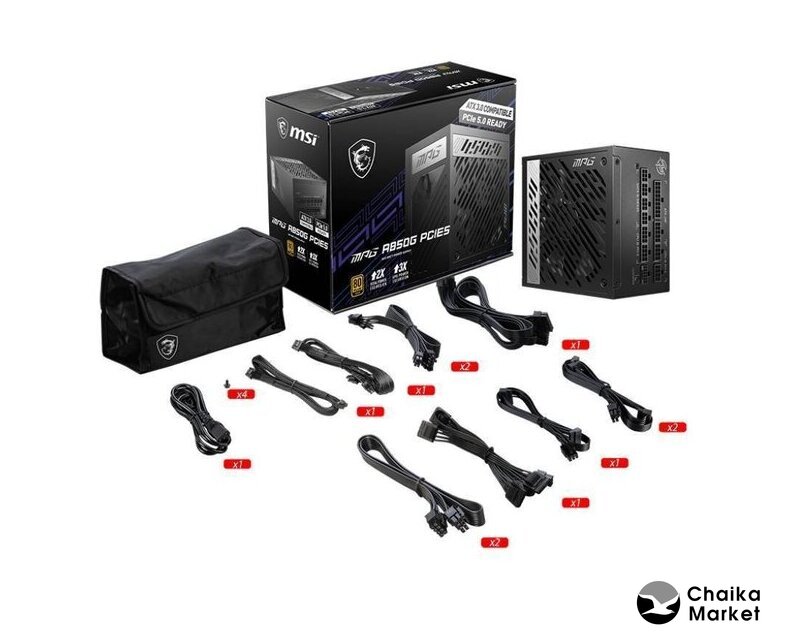 ATX 850 Вт, активная PFC, золотой сертификат, вентилятор 1x120 мм, модульные кабели, 1x 12В 70.8А, 1x PCIe Gen5