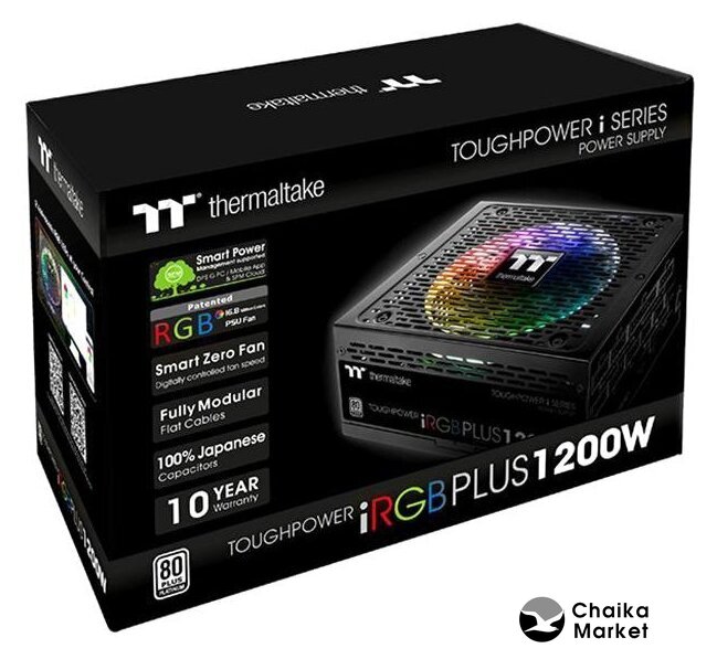 ATX 1200 Вт, активная PFC, платиновый сертификат, вентилятор 1x140 мм, модульные кабели, 1x 12В 100А