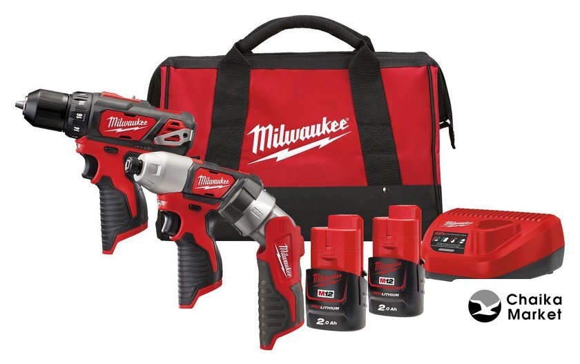 | Комплектация | - Аккумуляторная безударная дрель-шуруповерт Milwaukee M12 BDD-0 (Арт. 4933441930) - 1 шт- Аккумуляторный субкомпактный импульсный винтоверт Milwaukee M12 BID-0 (Арт. 4933441955) - 1 шт- Аккумуляторный светодиодный фонарь с наклонным световым блоком Milwaukee M12 TLED-0 (Арт. 4932430360) - 1 шт- Аккумулятор Milwaukee M12 B2 2.0 Ач (Арт. 4932430064) - 2 шт- Зарядное устройство Milwaukee C12 C (Арт. 4932352000) - 1 шт- Инструкция по эксплуатации- Сумка для инструмента |