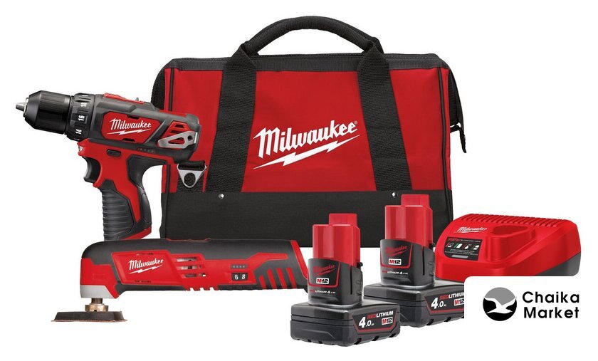 Комплектация | - Аккумуляторная безударная дрель-шуруповерт Milwaukee M12 BDD-0 (Арт. 4933441930) - 1 шт- Аккумуляторный многофункциональный инструмент Milwaukee C12 MT-0 (Арт. 4933427180) - 1 шт- Аккумулятор Milwaukee M12 B4 4.0 Ач (Арт. 4932430065) - 2 шт- Зарядное устройство Milwaukee C12 C (Арт. 4932352000) - 1 шт- Инструкция по эксплуатации- Сумка для инструмента |