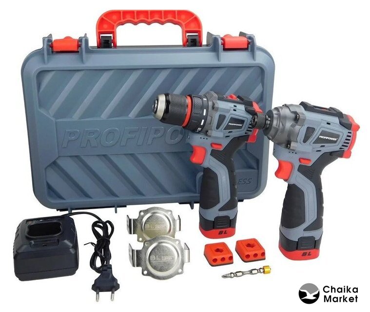 Комплектация | - Аккумуляторный бесщеточный винтоверт PROFIPOWER BL-162- Аккумуляторный бесщеточный шуруповерт PROFIPOWER BL-161- Аккумулятор 2 А*ч X0027 - 2 шт- Зарядное устройство A1158- Кейс |