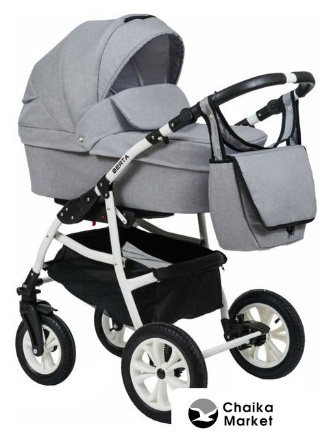 2 в 1 (люлька + прогулка), стиль: современный, искусственная кожа, шины надувные, вес 15.7 кг, цвет белый