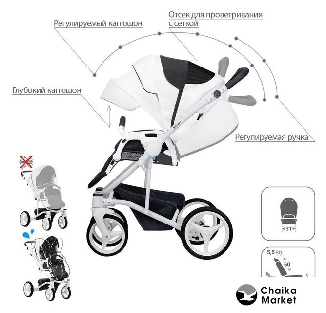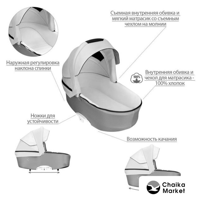 | Модульная система | 2 в 1 (люлька + прогулка) |