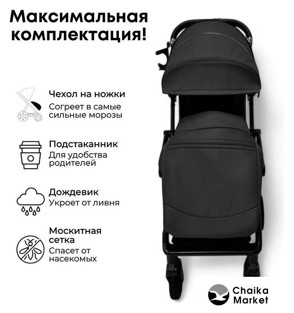 Комплектация | чехол на ноги, дождевик, противомоскитная сетка |