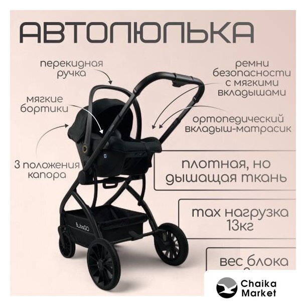 | Модульная система | 3 в 1 (прогулка + люлька + автокресло) |
