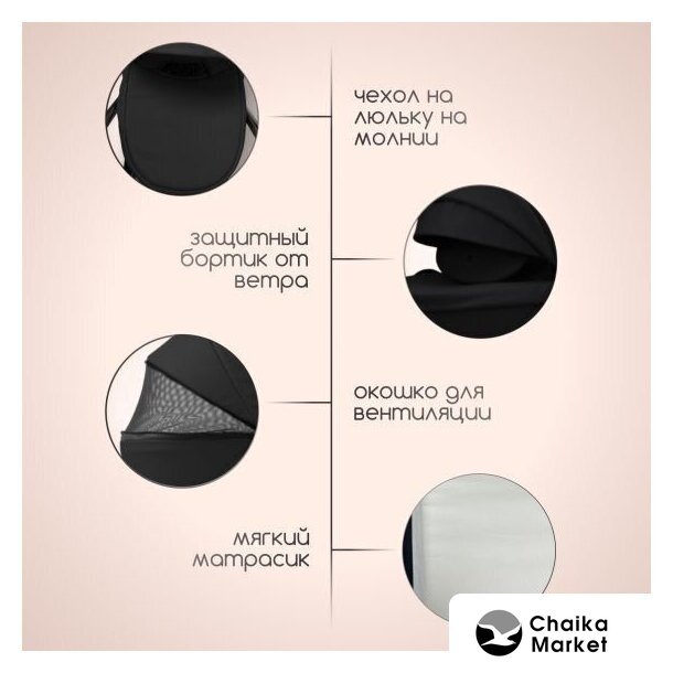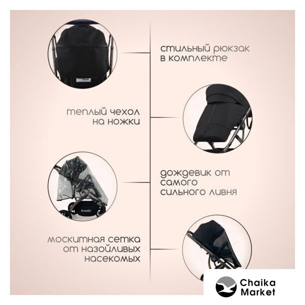 | Комплектация | матрасик, чехол на ноги, дождевик, противомоскитная сетка, сумка |