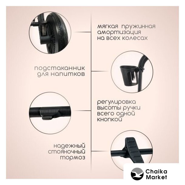 2 в 1 (люлька + прогулка), стиль: современный, ткань/искусственная кожа, шины надувные, вес 15.1 кг, цвет коричневый