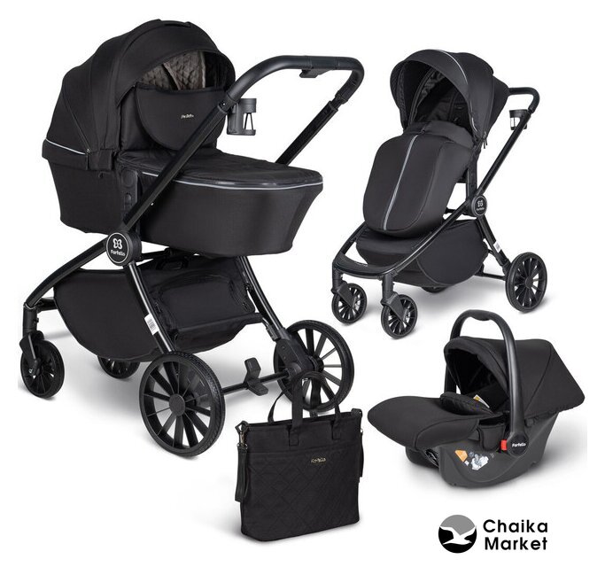 3 в 1 (прогулка + люлька + автокресло), стиль: современный, ткань, вес 9.8 кг, цвет черный