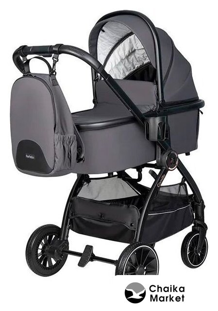 2 в 1 (люлька + прогулка), стиль: современный, ткань/искусственная кожа, шины надувные, вес 15.2 кг, цвет серый/темно-серый