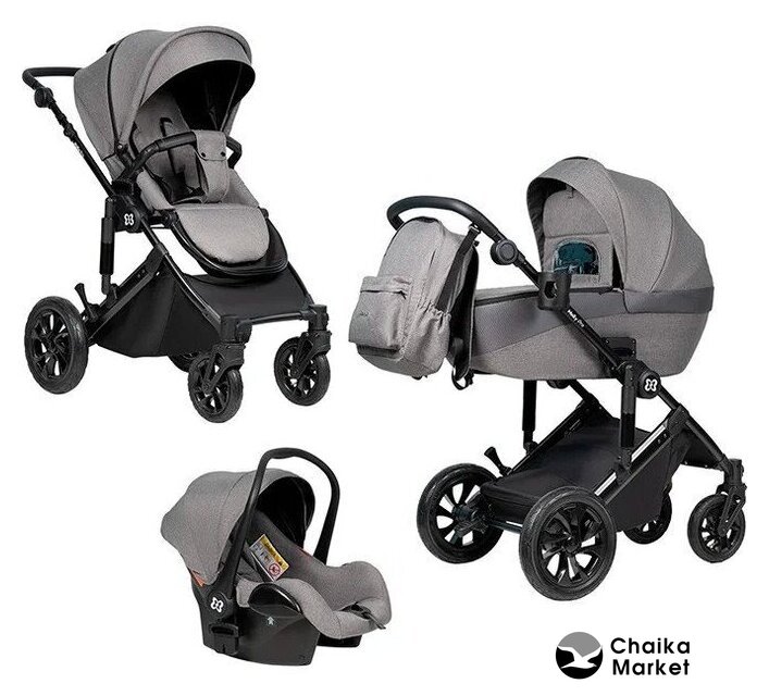 3 в 1 (прогулка + люлька + автокресло), стиль: современный, ткань, шины цельные, вес 13.1 кг, цвет черный