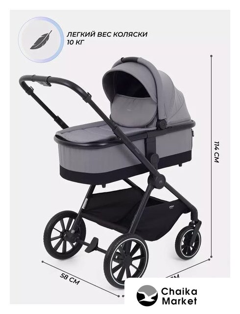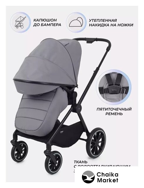 3 в 1 (прогулка + люлька + автокресло), стиль: современный, ткань, вес 9.8 кг, цвет серый
