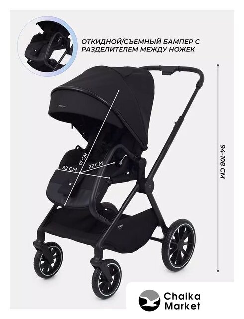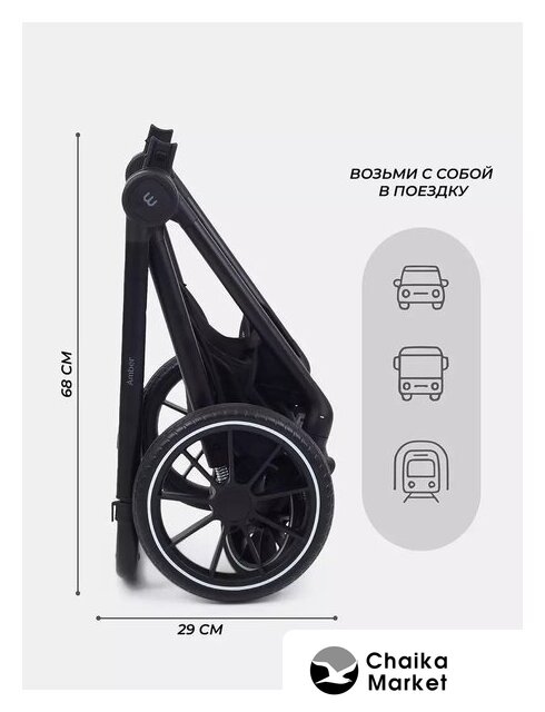 2 в 1 (трансформер), стиль: современный, ткань, шины цельные, вес 12.5 кг, цвет черный