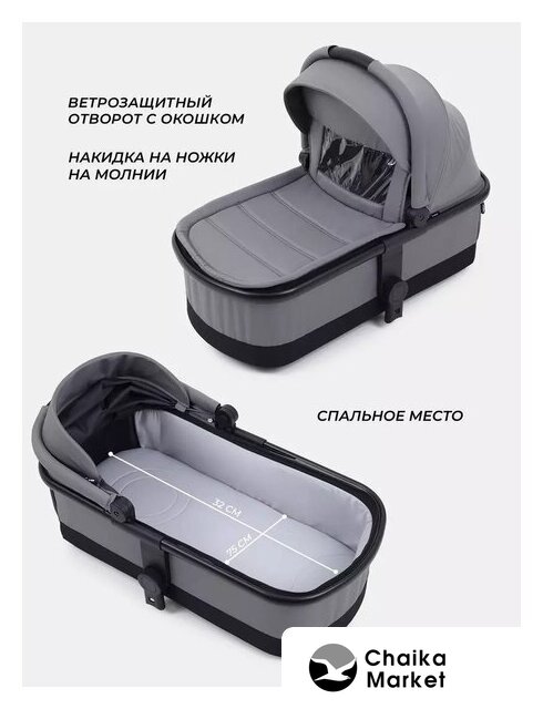 2 в 1 (люлька + прогулка), стиль: современный, ткань, шины цельные, вес 12 кг, цвет серый