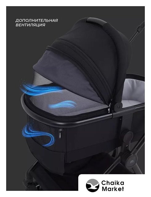 2 в 1 (люлька + прогулка), стиль: современный, ткань, вес 11.8 кг, цвет черный