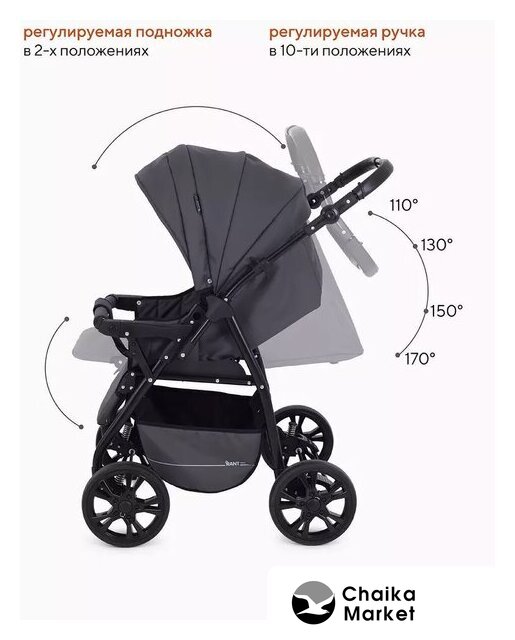2 в 1 (трансформер), стиль: современный, ткань, шины цельные, вес 9.8 кг, цвет серый