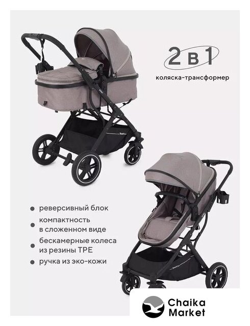 2 в 1 (трансформер), стиль: современный, ткань, шины цельные, вес 10.2 кг, цвет темно-серый
