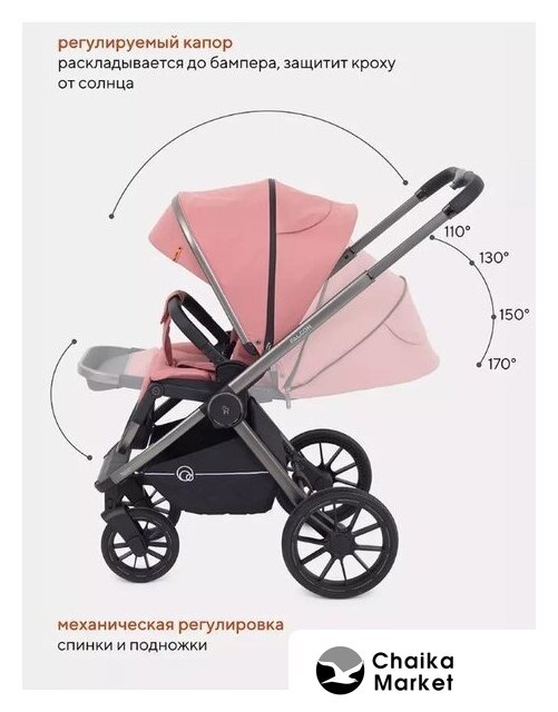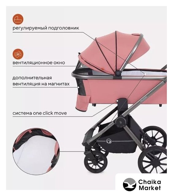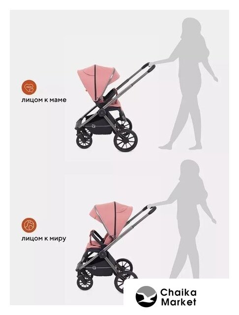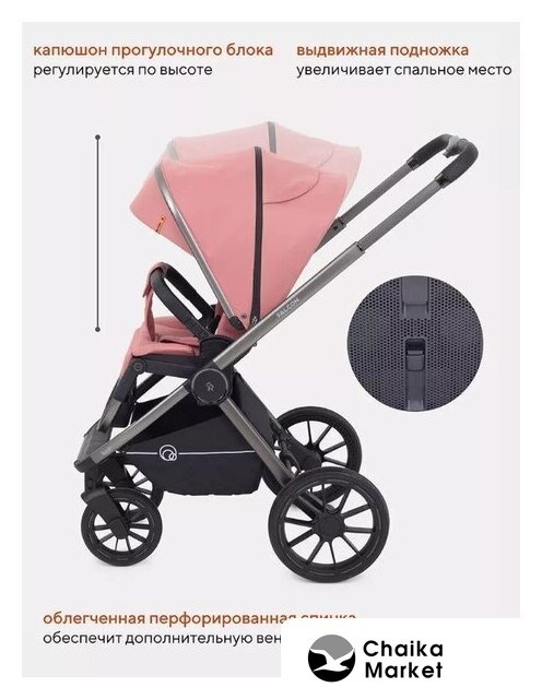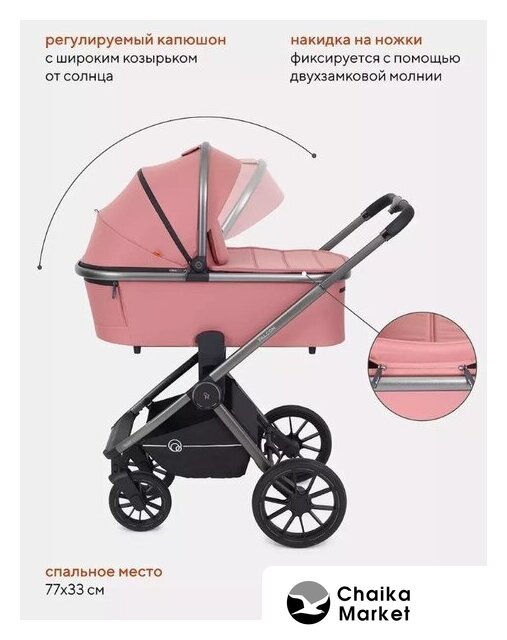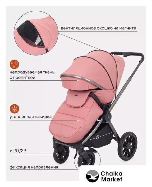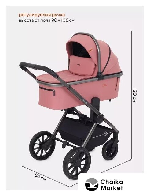 3 в 1 (прогулка + люлька + автокресло), розовый