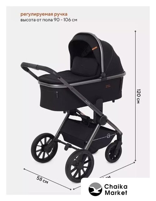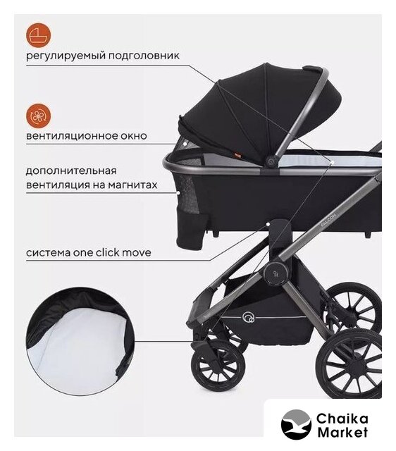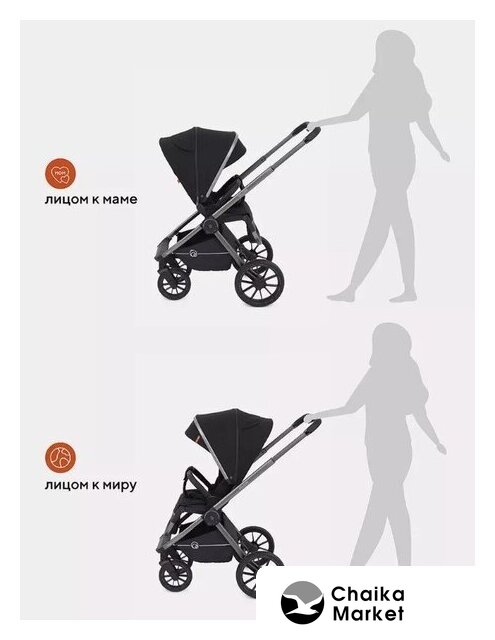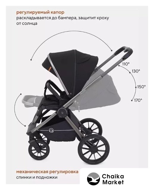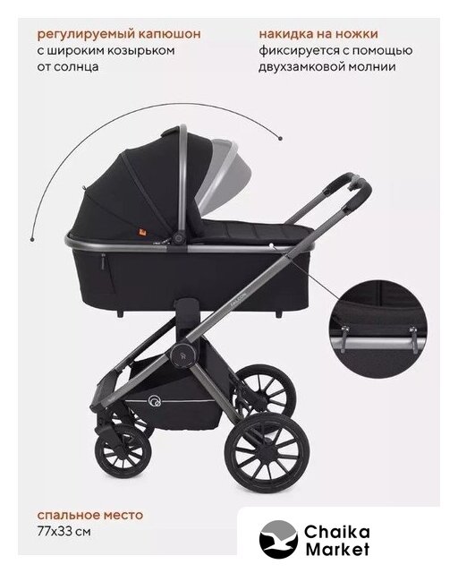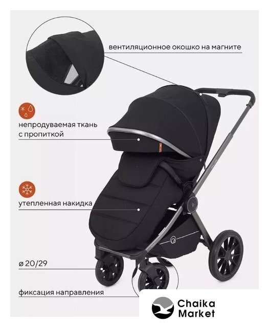 2 в 1 (люлька + прогулка), стиль: современный, ткань, шины цельные, вес 11.7 кг, цвет черный