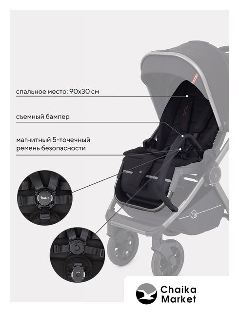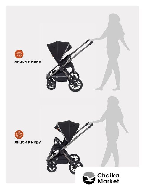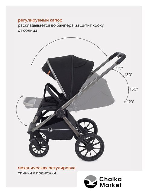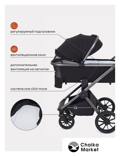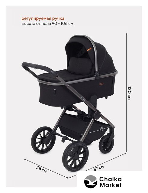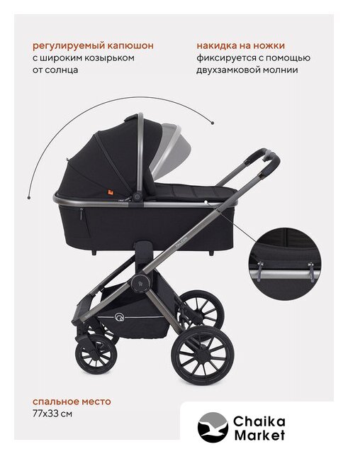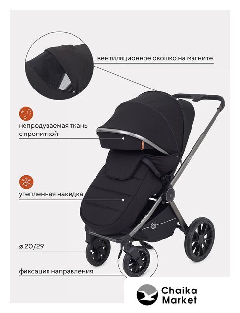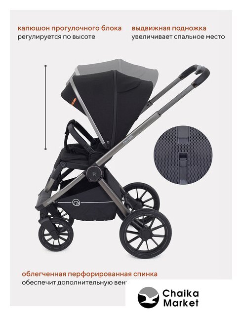 2 в 1 (люлька + прогулка), стиль: современный, ткань, шины цельные, вес 13.1 кг, цвет черный