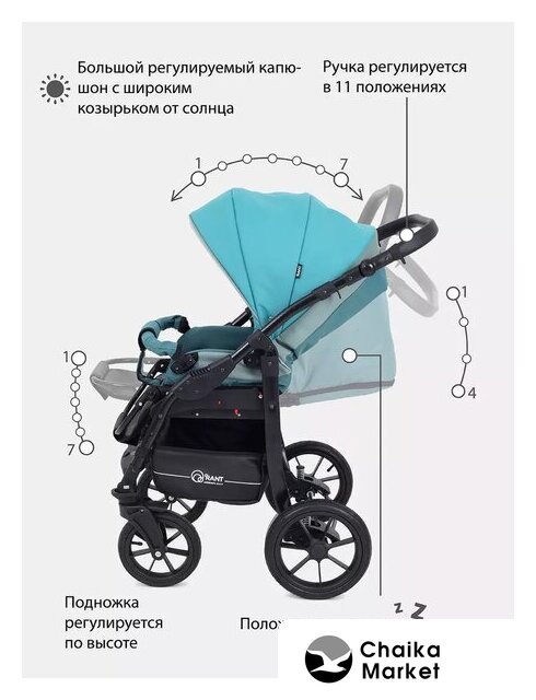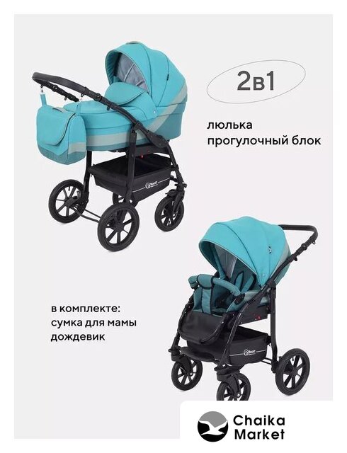 2 в 1 (люлька + прогулка), рама алюминий, шины надувные, вес 14 кг