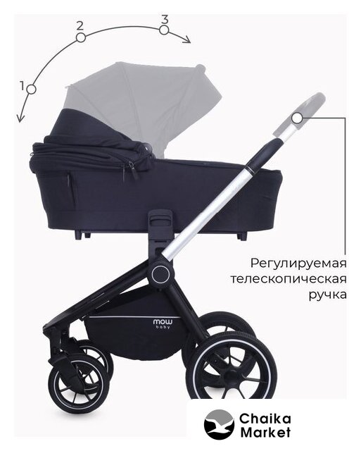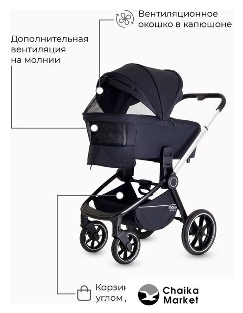 3 в 1 (прогулка + люлька + автокресло), стиль: современный, искусственная кожа, шины цельные, вес 16.6 кг, цвет черный