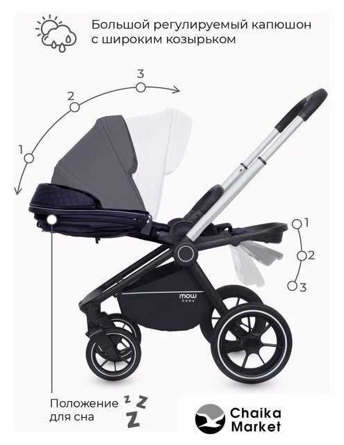 2 в 1 (люлька + прогулка), стиль: современный, ткань, вес 12.4 кг, цвет серый