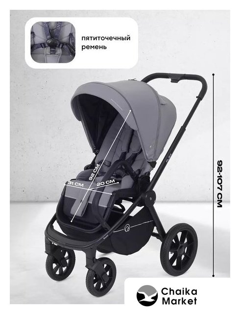 2 в 1 (люлька + прогулка), стиль: современный, ткань, вес 11.7 кг, цвет черный