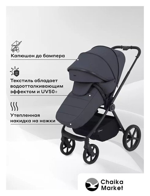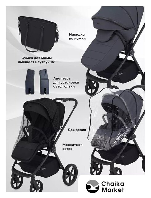2 в 1 (люлька + прогулка), стиль: современный, ткань, шины цельные, вес 13.1 кг, цвет серый
