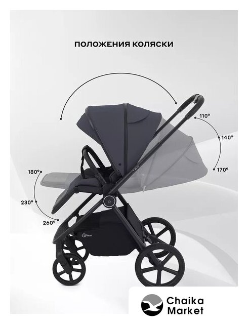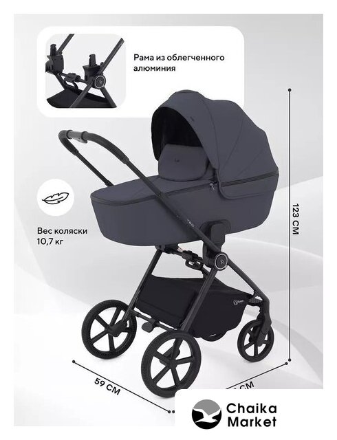 2 в 1 (люлька + прогулка), стиль: современный, ткань, вес 10.7 кг, цвет серый