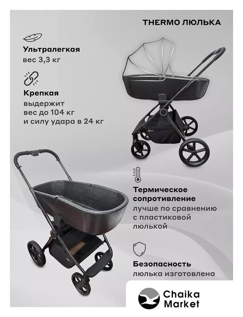 2 в 1 (люлька + прогулка), стиль: современный, ткань, вес 10.7 кг, цвет черный