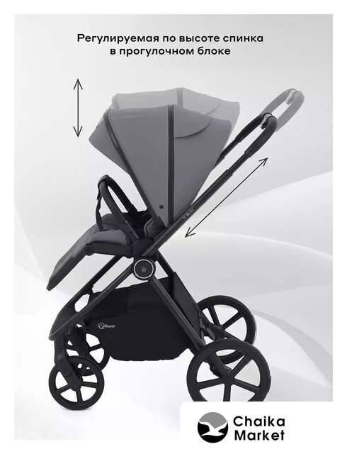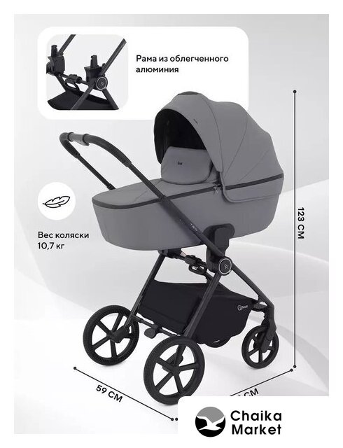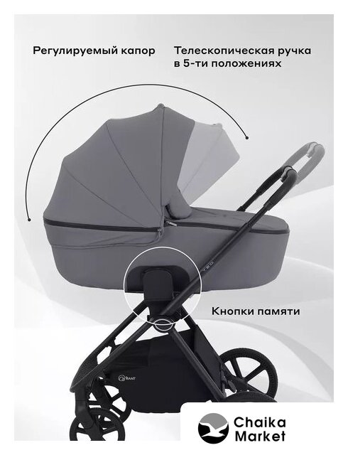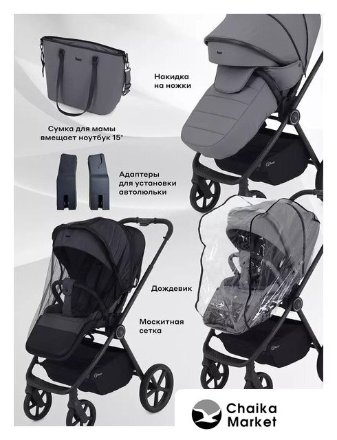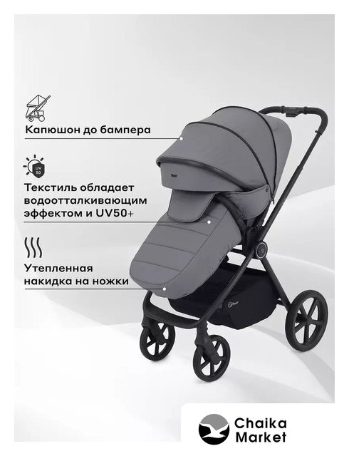 2 в 1 (люлька + прогулка), стиль: современный, ткань, шины цельные, вес 13.1 кг, цвет серый