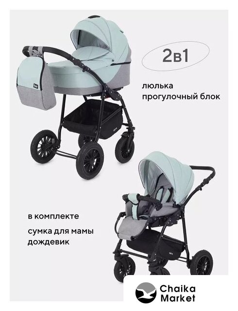 2 в 1 (люлька + прогулка), стиль: современный, ткань, шины надувные, вес 14.5 кг, цвет светло-зеленый
