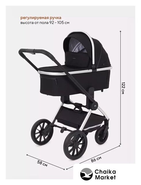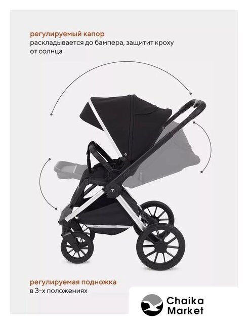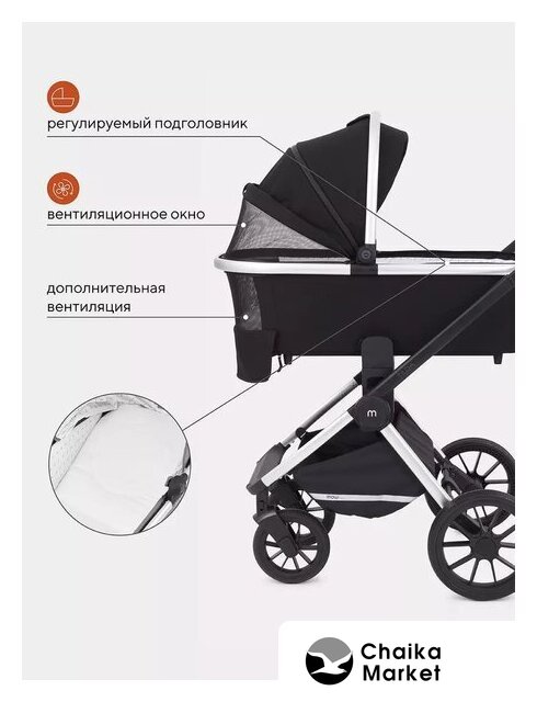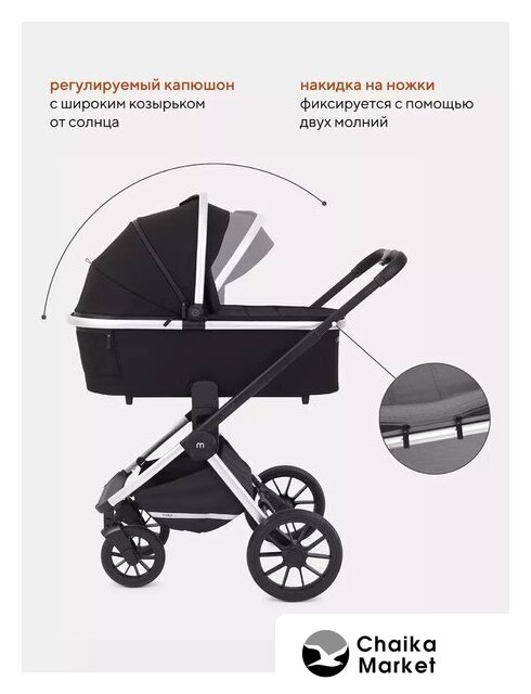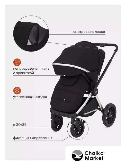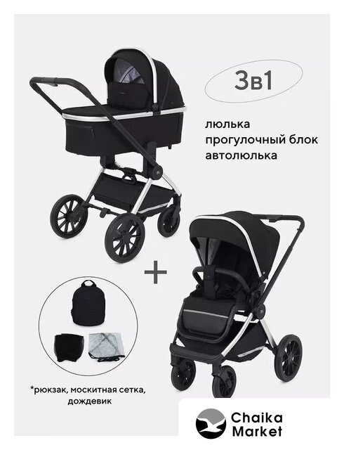3 в 1 (прогулка + люлька + автокресло), стиль: современный, искусственная кожа, шины цельные, вес 14.1 кг, цвет черный