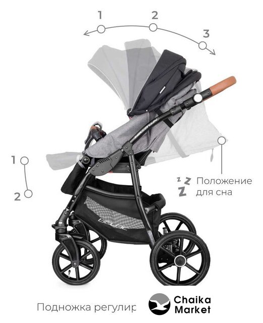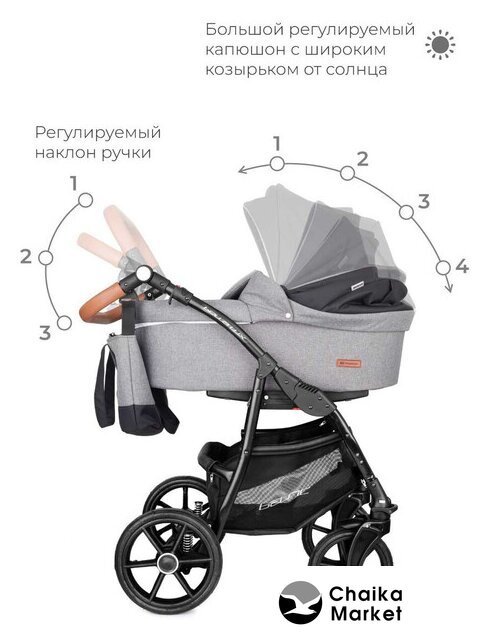 2 в 1 (люлька + прогулка), стиль: современный, ткань, шины цельные, вес 13.3 кг, цвет серый