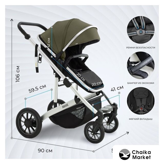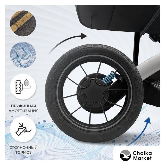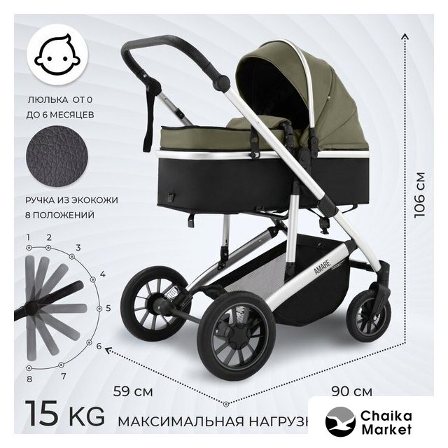2 в 1 (люлька + прогулка), стиль: современный, ткань, шины цельные, вес 11.2 кг, цвет бежевый